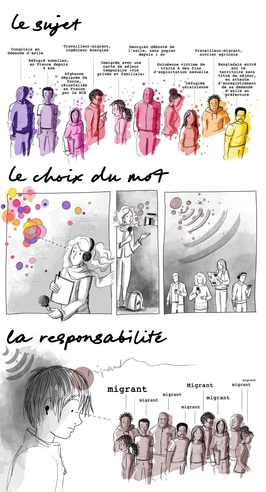 Migrant, immigré, réfugié, étranger ou demandeur d’asile n’ont pas la même signification. Les journalistes veilleront à employer les mots les plus appropriés, en se référant aux définitions juridiques et scientifiques ainsi qu’aux catégories administratives en vigueur pour éviter amalgames et approximations.